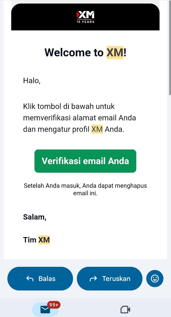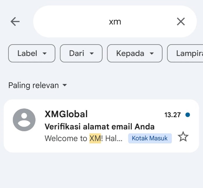 Cek email Anda dengan pencarian ketik "XM"