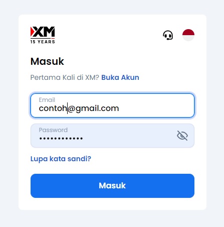 - Silahkan isi form login member XM seperti contoh ini, bila lupa password silahkan klik Lupa kata sandi