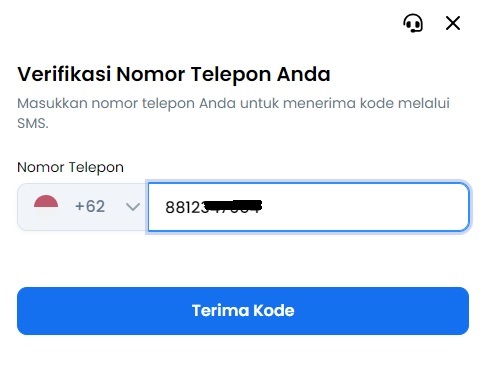 Selanjutnya isi nomor telp Anda untuk mendapatkan kode verifikasi, contoh seperti ini