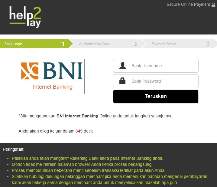 - Selanjutnya akan menampilkan halaman Internet Banking untuk melanjutkan transaksi deposit