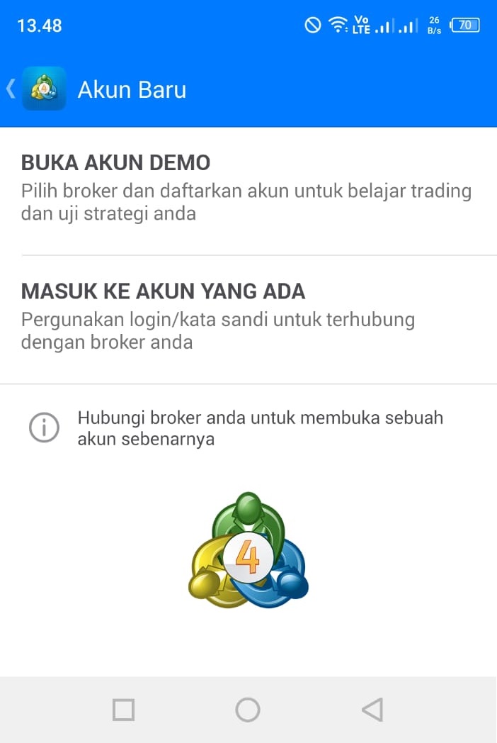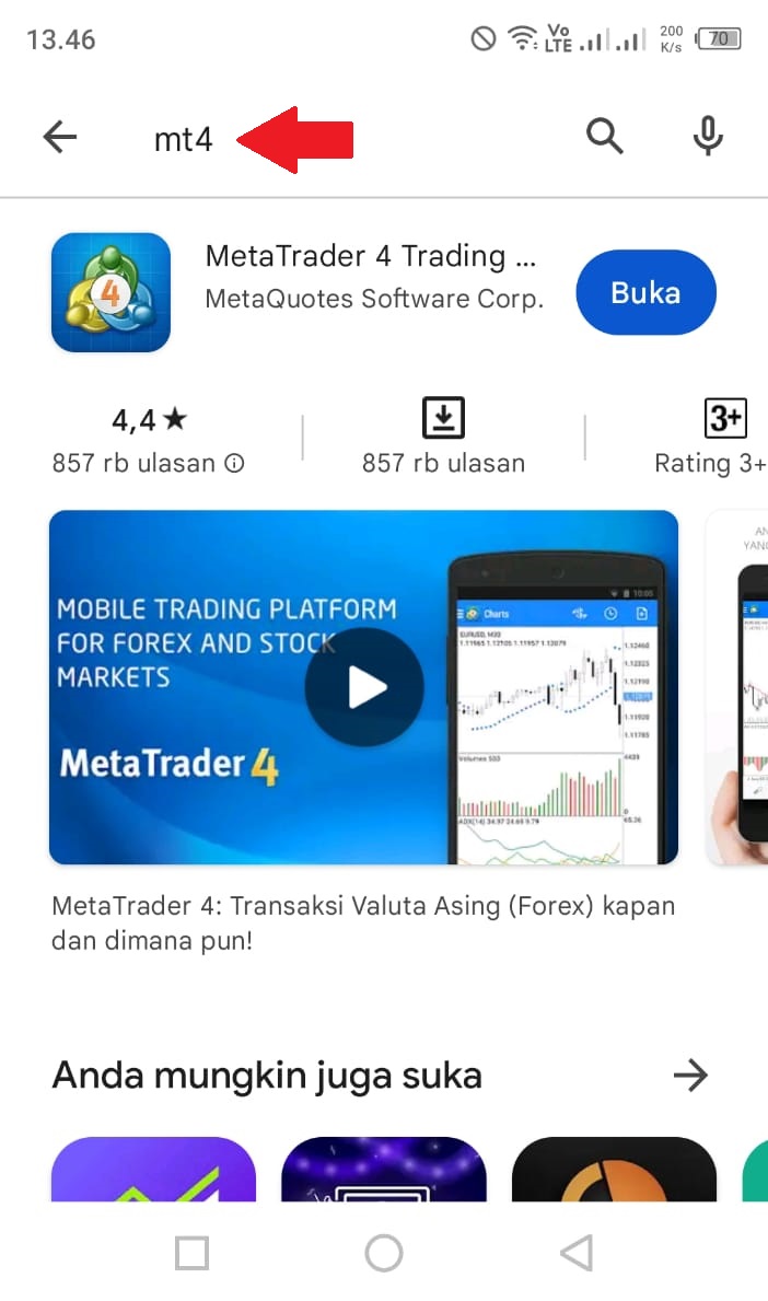 - Bisa download melalui aplikasi Play Store, pada pencarian ketik mt4