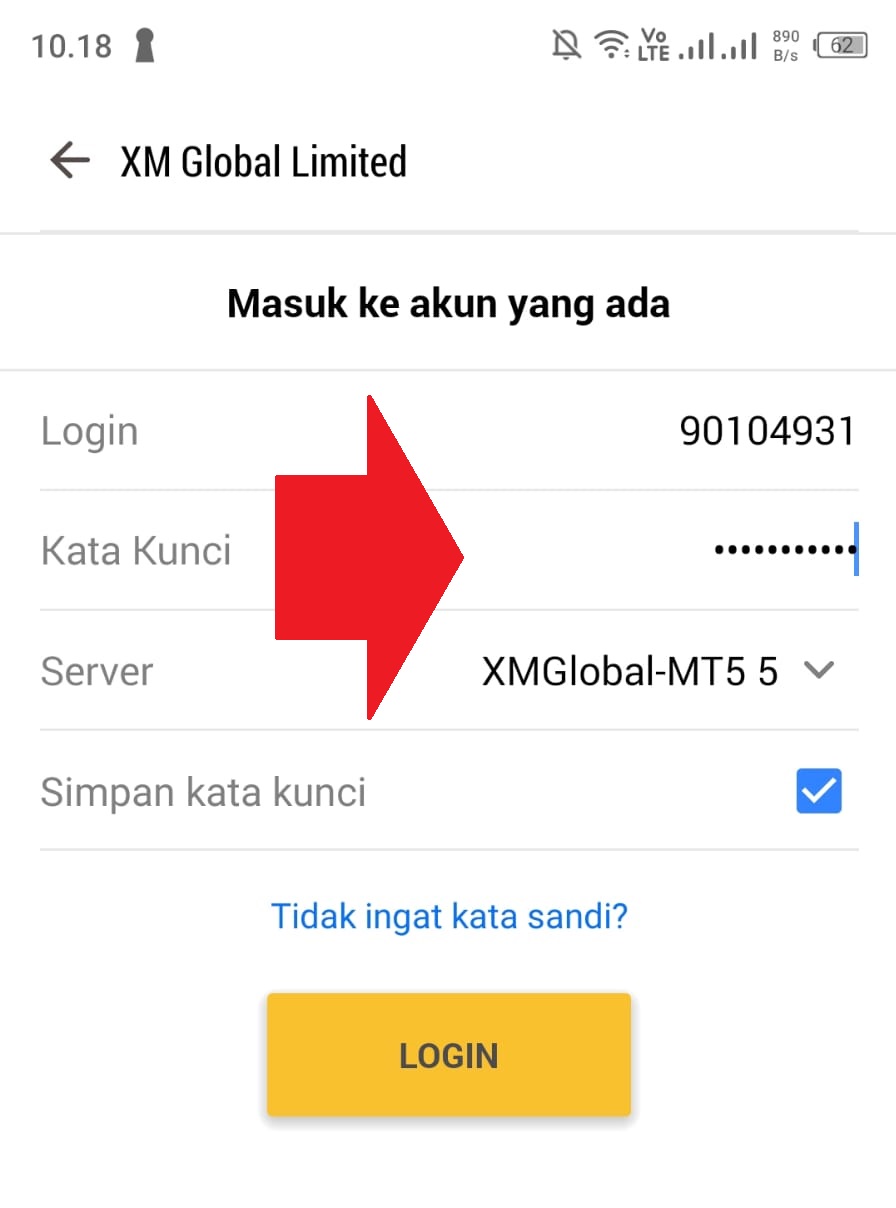 - Pilih server XMGlobal sesuai informasi server akun MT5 lalu klik tombol LOGIN